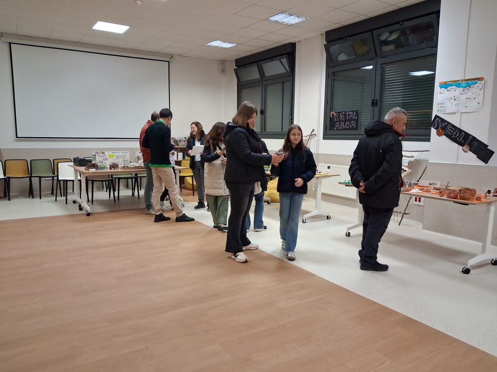 1.mailako ikasleen gurasoak ikasleek egindako erakusketa ikusten