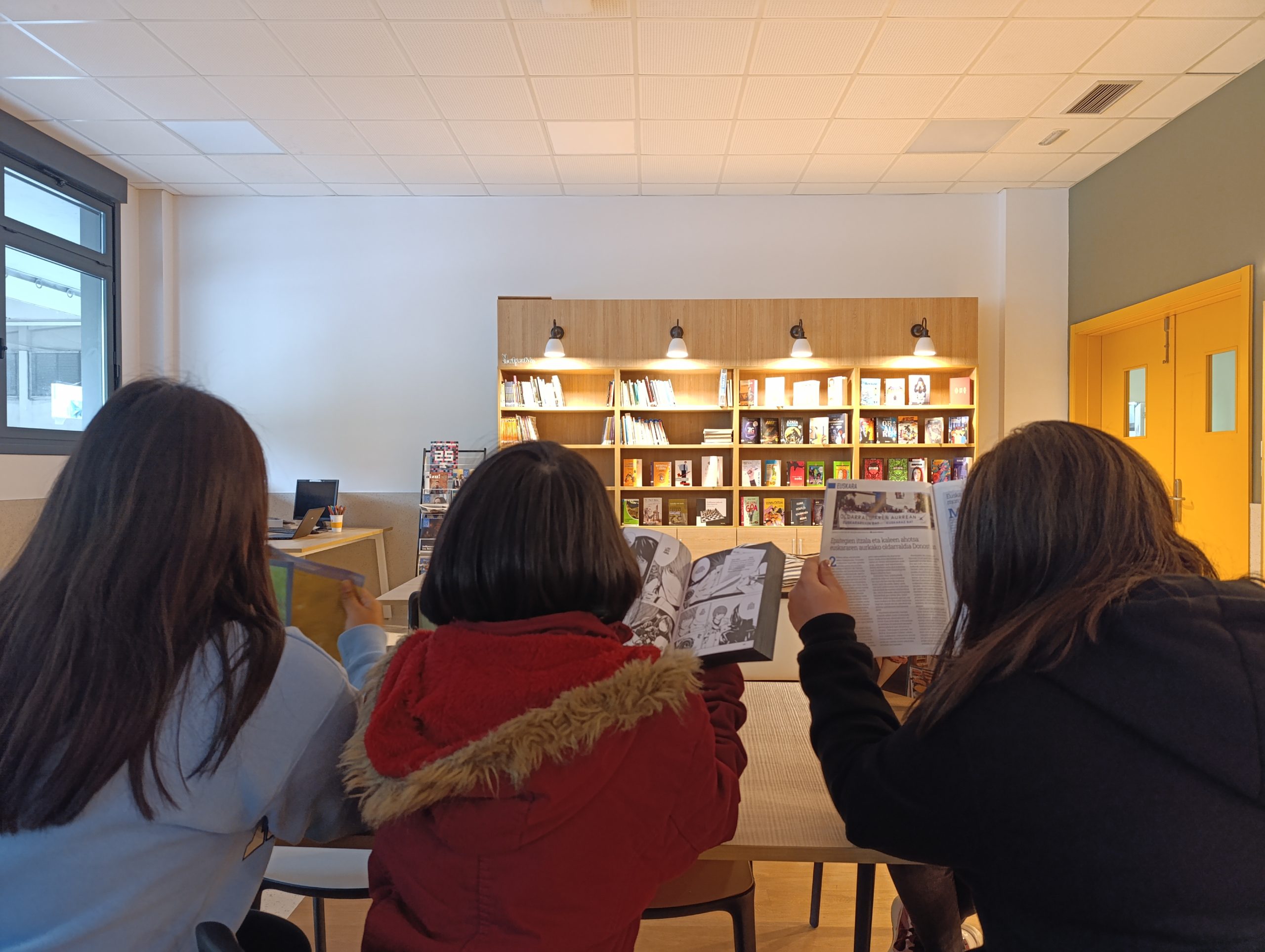 Liburutegian bertako arduradun Carmen eta Amaiarekin egoteko aukera izan zuten, Arduradunek ongietorria egin ondoren, ikasleek aurrez prestaturiko galderei erantzun zieten.